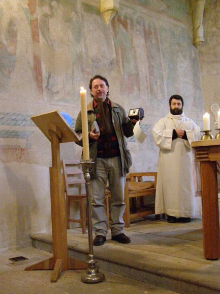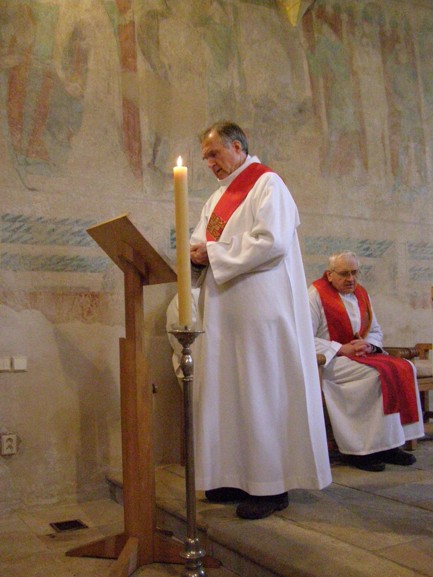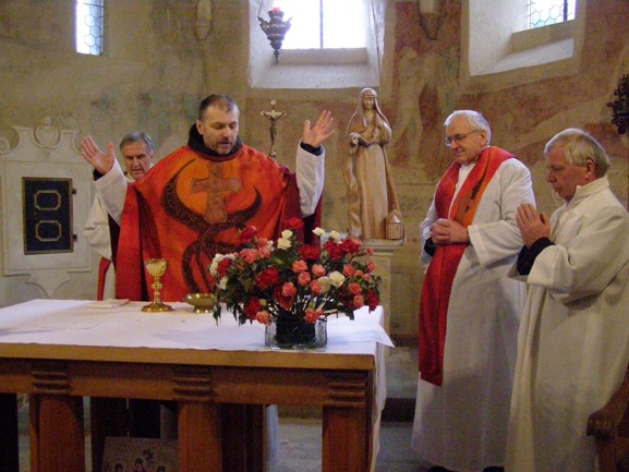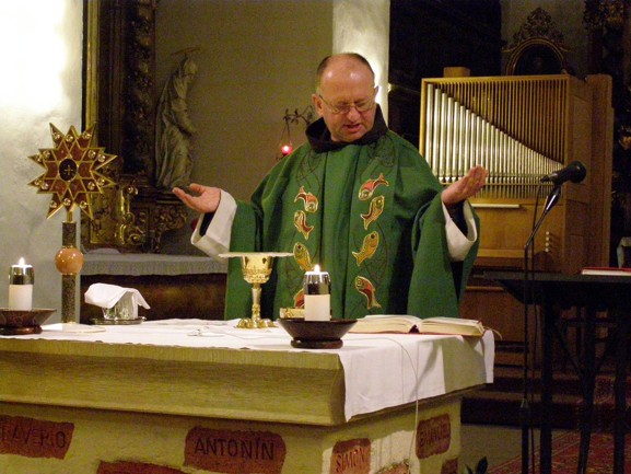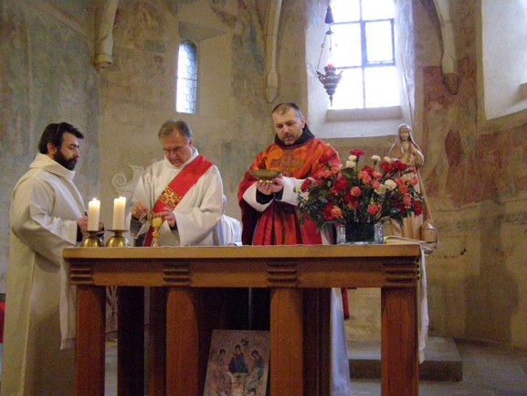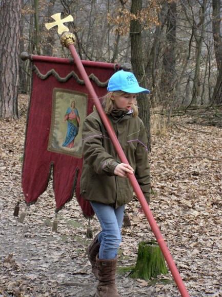 Na mši svaté v 8.00 v kapli sv. Michaela bylo přítomno 32 poutníků. Při mši byl (pro nás poprvé) vystaven nový relikviář 14 pražských mučedníků. Po požehnání těmito relikviemi jsme vyšli na tramvaj č. 17 k Národnímu divadlu a odjeli na stanici Pobřežní cesta v Braníku, kde jsme včera skončili. V 10.00 jsme vyrazili na dnešní pěší etapu v počtu 33 poutníků a v tomto počtu jsme dorazili i do hospody u Kaštanu ve Vraném nad Vltavou. Dostali jsme k dispozici hezký nekuřácký salonek a v hospodě velmi dobře vařili, takže při odchodu tato hospoda dostala jako první náš List uznání a spokojenosti (říkali, že si ho zarámují a v salonku pověsí).