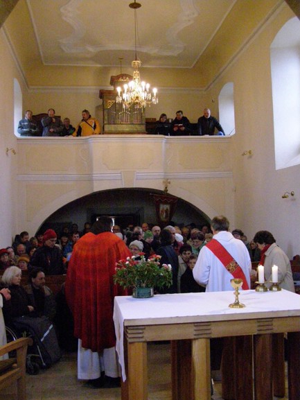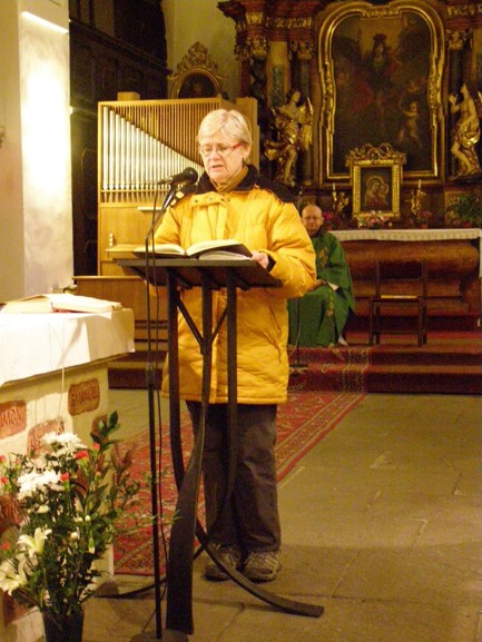 Na mši svaté v kostele sv. Klimenta na Levém Hradci bylo v sobotu 15.2.2014 přítomno 105 lidí, 95 se podepsalo do kroniky. V 11.10 vyrazilo pěšky (nejméně) 77 poutníků a většina z nich absolvovala první část etapy (do kostela Panny Marie Sněžné). Zde jsme byli přivítáni P. Dobrowskim a pozváni na ranní mši svatou pro nás poutníky na neděli v 8.00 h.