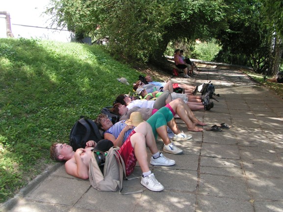 Už z toho je vidět, že letošní velehradská pouť byla pro mnohé fyzicky podstatně náročnější než v minulých letech, i když trasa byla téměř shodná. Přispělo k tomu panující vedro, a také poměrně rychlé tempo s jen krátkými zastávkami na odpočinek. Dokonce i mladí si sáhli hluboko ke dnu svých sil. A zvláště pak ti, co jsou přece jen trochu starší, méně trénovaní, a o to víc tělnatí (nebo oboje) nebo s sebou vláčí speciální suvenýry (vysoký tlak, cukrovku). Jako jeden z této kategorie jsem se v duchu vícekrát obracel ke sv. Jakubovi, patronu poutníků, a svatým Cyrilu a Metodějovi, k jejichž oslavě jsme tuto pouť konali. Věřím, že právě díky jejich podpoře jsme nakonec všichni všechno dobře zvládli, a domů se vrátili s přesvědčením, že pokud Pán Bůh dá, za rok na Velehrad poputujeme znovu!