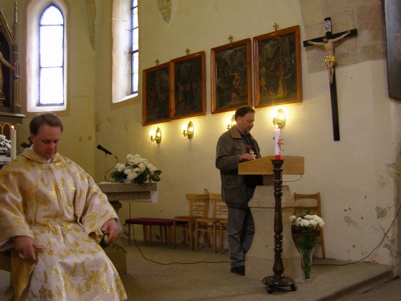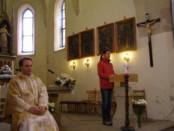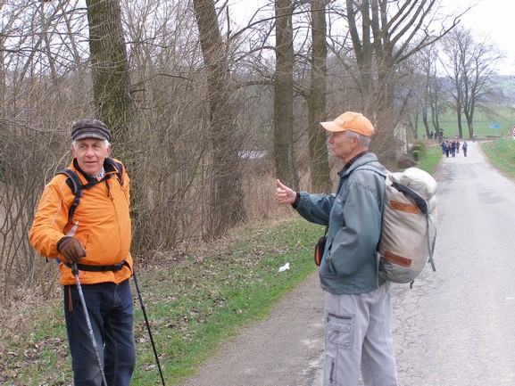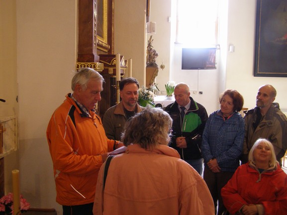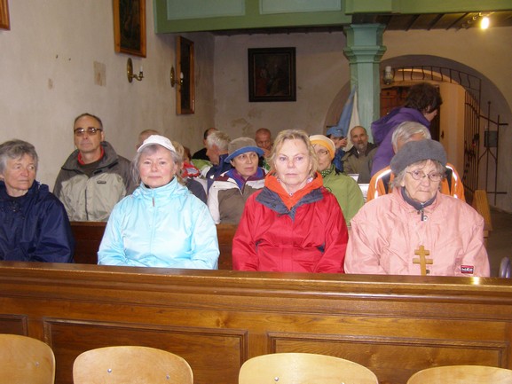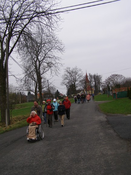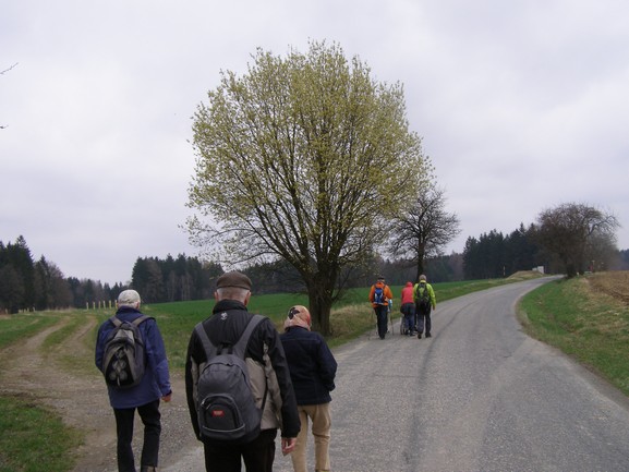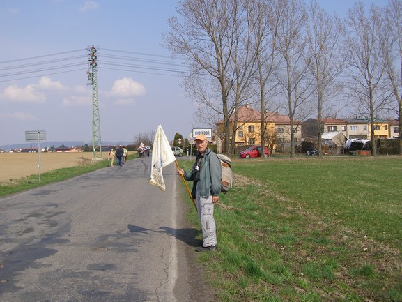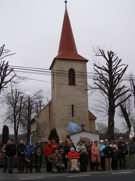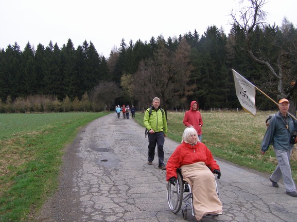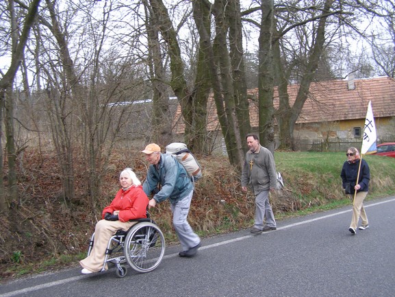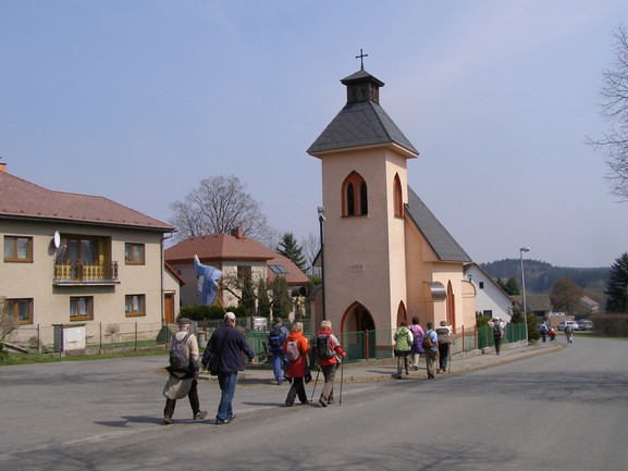 Tyto etapy probíhaly již v královéhradecké diecézi. V sobotu 20. dubna jsme zahájili tam, kde jsme před měsícem skončili tj. u kostela Navštívení Panny Marie v Třebětíně. A to krátkým zamyšlením nad duchovním slovem v této etapě: Víra, smíření a odpuštění. Nejde jen o to se modlit: „A odpusť nám naše viny, jakož i my odpouštíme našim viníkům" (Mat. 6,12). A my? Kolik mám v okolí lidí, které „nemusím"? Možná, že se za ně někdy modlím, ale Kristus chce na mne víc - vyhledávat je tj. setkat se s nimi, navštívit je.  A tak jsme potom v průběhu cesty mohli přemýšlet s kým si půjdu popovídat, nebo ho pozvu i na kávu?  Na tuto etapu za chladného počasí, ale pod dobrých cestách nás vyrazilo 29 - i  se sestrou Uršulou na vozíčku. Absolvovala s námi obě etapy a při cestě s kopce vždy výrazně vpředu. Ještě dopoledne jsme dorazili do Čihoště, kde jsme měli mši svatou a také si zde připomněli mučednickou smrt místního faráře otce Josefa Toufara. Odpoledne jsme pokračovali přes Leštinu a Sázavku až do Tisu - celkem v pohodě 26 km. Na nocleh jsme se auty přesunuli do Světlé nad Sázavou - část přespala u sestry Markéty, větší část v penzionu Marianeum.
