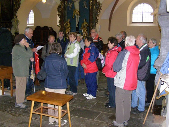 V neděli 18. května ráno jsme se nejdříve ve farním kostele sv. Bartoloměje zúčastnili mše svaté opět v počtu 26 poutníků a po ní přečetli další část o církvi tentokrát o tom jak se jako laikové podílíme na Kristově kněžském, prorockém a královském úřadu (viz články v KKC 897 - 913). A po snídani na faře jsme se vystoupali na další poutní místo v českobudějovické diecézi - Křemešník. A odpolední část trasy nás vedla přes Nový Rychnov a Rohoznou do Dolní Cerekve, kde u kostela sv. Máři Magdaleny jsme tuto 26km etapu ukončili.