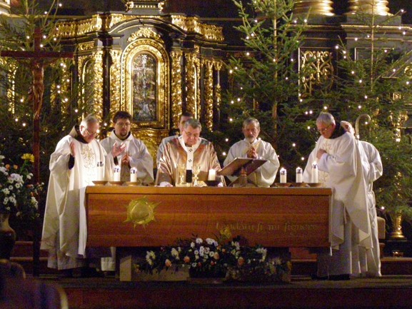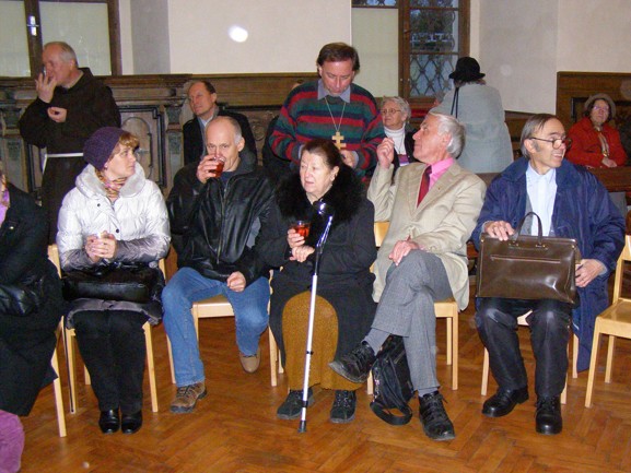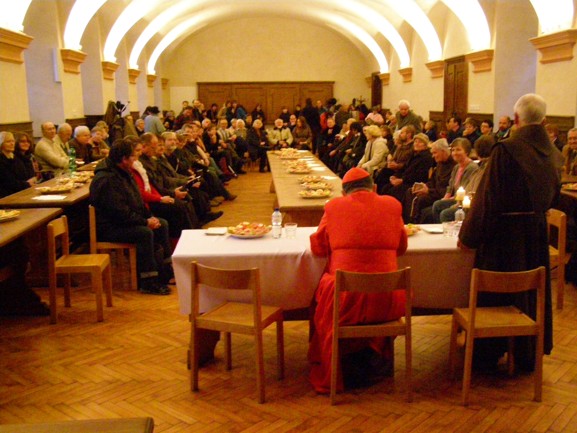 Na tradiční tříkrálové setkání pražských sekulárních františkánů v neděli 6.ledna 2013 přišli letos i poutnicí, kteří každoročně absolvují trasu z Levého Hradce na Velehrad. Setkání začalo mší svatou v kostele Panny Marie Sněžné na Novém Městě pražském, kterou sloužil pražský arcibiskup  Dominik kardinál Duka.  Při mši svaté přisluhoval jáhen Jan Pečený - jeden ze zakladatelů CMP. Po mši svaté se účastníci sešli na přátelské besedě s otcem kardinálem v refektáři františkánského kláštera. Besedu uvedl a moderoval otec Benedikt, který vyzval přítomné, aby nejen kladli otázky, ale také hovořili o svých aktivitách. Diskuse byla živá a opravdu oboustranná. Na setkání jsme otce kardinála informovali o tom, že podle tradice již od prvního ročníku v roce 1982 se poutníci při každé etapě v radostném růženci modlí za biskupy a církev v České republice. Na závěr se otec kardinál se zapsal do poutní knihy pro letošní rok.