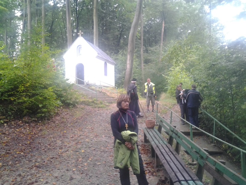 Za krásného slunečního počasí jsme v neděli vyšli i došli. V Lukovečku nás otevřená kaplička přilákala k malinké pobožnosti a čekalo i pohoštění výborným tvarohovým frgálem a jinými dobrotami. Přesvědčili nás i k návštěvě jejich zahrádkářské výstavy (kromě jiného s nádhernými fuchsiemi) a pouť jsme zapsali i do pamětní knihy. Na Sv.Hostýně nás přivítalo zvonění k odpolednímu požehnání a s písní Chválu vzdejme ... jsme zdolali i poslední překážku - schody k bazilice. Po požehnání jsme prošli Jurkovičovu křížovou cestu s improvizovanou modlitbou Jindry Tománka ( jeho manželka Maruška celu cestu prosila Svatého Ducha, aby Jindrovi vnukal správná slova). Pak slavný růženec v bazilice a pátá pouť je ve vzpomínkách. Děkujeme všem, kdo nám pomáhali, kdo se s námi modlili, kdo se o nás starali, andělům strážným, kteří nás bez úhony vedli a hlavně Vám, že jsme se mohli pouti účastnit. Bohu díky.