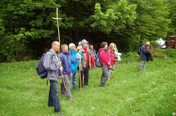 Sli s nami i zkuseni poutnici, proto nic nenamitali proti spolecne modlitbe a radi se pripojili, kdyz jsme si pri prvnim spatreni poutniho mista klekli a zdravili Pannu Marii. Po ceste jsme trochu zmokli a jedna dvojice nasich se malem ztrauila, díky Bohu a andelum straznym vsak cestu odhadli dobre a vse stihli vcas.