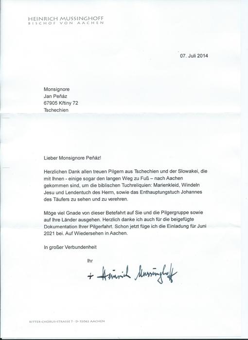 Dá-li Pán Bůh, rád bych se této pouti ještě jednou zúčastnil. Je krásné, že otec biskup na nás stále pamatuje. Zdravím všechny spolupoutníky do Cách z roku 2014. Poutník Karel